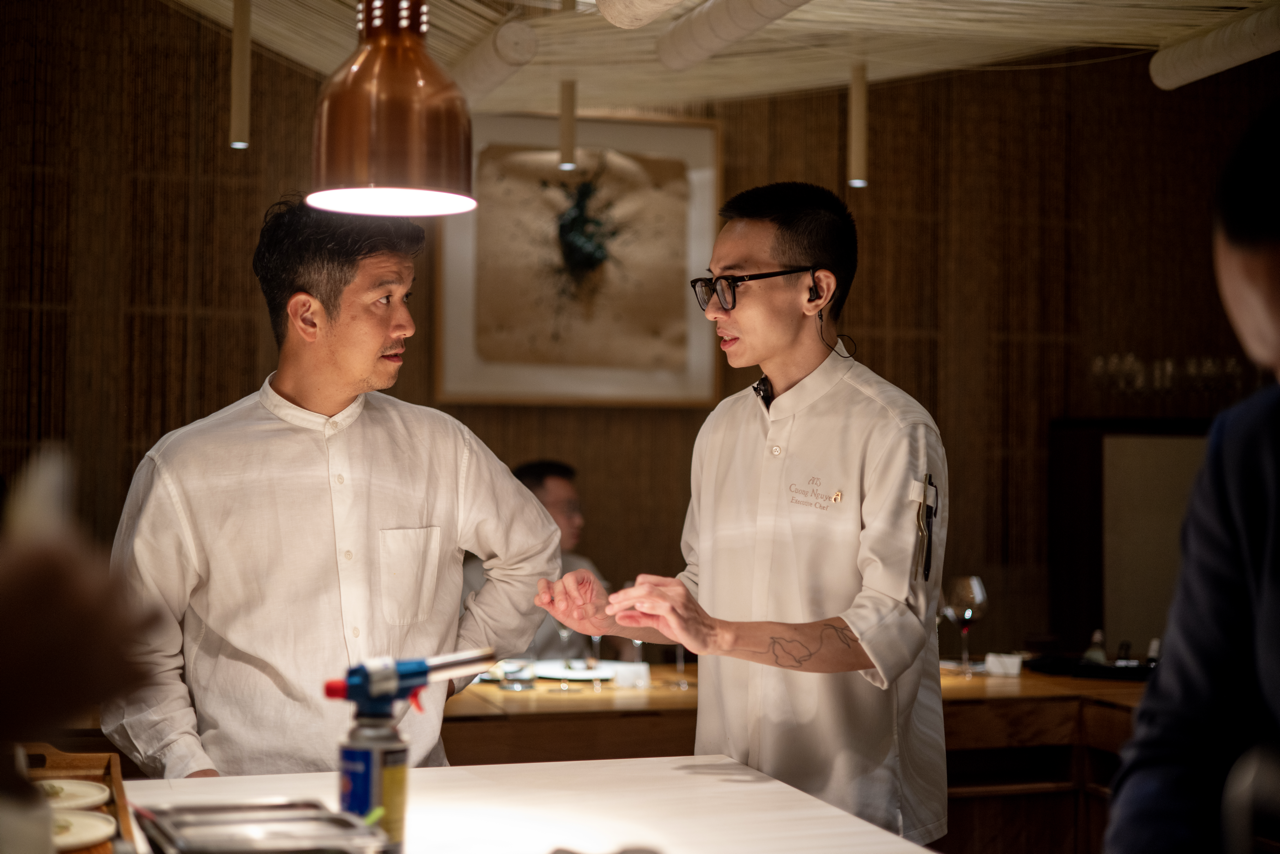 Through the seamless collaboration of the two chefs, ingredients that might seem worlds apart were thoughtfully composed and delicately paired, creating striking highlights throughout the dinner. Local specialties such as Kaffir and Cร cuแปng (water bug) were set alongside Japanese delicacies like yuzu, bonito, and salted plum, resulting in unexpectedly delicious combinations.
